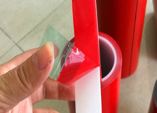 觀察膠帶結構:雙面亞克力膠帶通常由兩層粘性材料之間夾著一層保護膜組成。你可以仔細觀察膠帶的邊緣,看是否能夠看到兩個粘性表面和中間的保護膜。